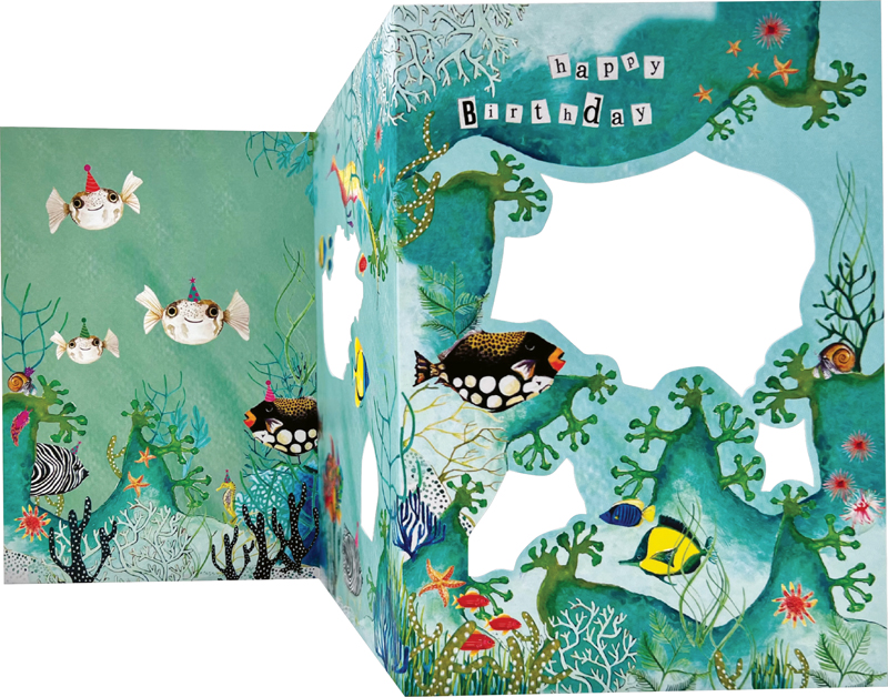 Concertina Ausziehkarte, Format B6, mit Umschlag in Cellophanhülle